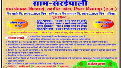 मनमोहन राजपूत (खैरा) कोटा विकासखंड अंतर्गत ग्राम पंचायत शिवतराई के आश्रित ग्राम सरईपाली में दो दिवसीय कबड्डी प्रतियोगिता का शुभारंभ…