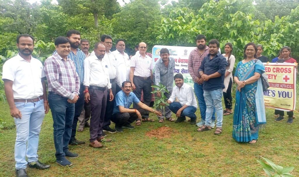 कोटा – अटल बिहारी वाजपेयी विश्वविद्यालय बिलासपुर से संबद्ध शासकीय निरंजन केशरवानी महाविद्यालय कोटा की राष्ट्रीय सेवा योजना इकाई, रेड रिबन क्लब, इको क्लब एवं यूथ रेडक्रास सोसाइटी के संयुक्त तत्वाधान में कारगिल विजय दिवस के अवसर पर अपने प्राणों की आहुति देकर भारत माता की रक्षा करने वाले वीर जवानों श्रद्धांजलि दी गई और एक पेड़ माँ के नाम अभियान के तहत फलदार, छायादार एवं औषधीय पौधों आम, मुनगा, नीम्बू, बेल, जामुन, कटहल, इमली, नीम, आँवला, कैथा, अमरूद, बरगद, तुलसी, सर्पगंधा एवं एलोवेरा का रोपण किया गया. जनभागीदारी समिति के अध्यक्ष नरेन्द्र बाबा गोस्वामी ने कारगिल विजय दिवस के अवसर पर बधाई देते हुए अपने उद्बोधन में बताया कि अपने देश की रक्षा के लिए हमें सदैव तत्पर रहना चाहिए और प्रकृति में संतुलन बनाए रखने के लिये पौधारोपण अवश्य करना चाहिए. महाविद्यालय की प्राचार्य डॉ. नाज़ बेंजामिन ने भारतीय सेना के अदम्य साहस और शौर्य को नमन किया और बताया कि हम सभी को इन वीर योद्धाओं के जीवन से प्रेरणा लेनी चाहिए और पर्यावरण को सुरक्षित रखने के लिए पौधारोपण करना चाहिए. कार्यक्रम अधिकारी शितेष जैन ने प्रत्येक विद्यार्थी से एक पेड़ माँ के नाम लगाकर उसकी देखभाल का आह्वान किया. रेड रिबन क्लब की नोडल अधिकारी डॉ. सन्जू पाण्डेय ने कहा कि पौधारोपण के बिना शुद्ध वातावरण की कल्पना अधूरी है।