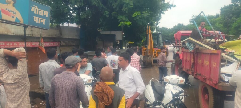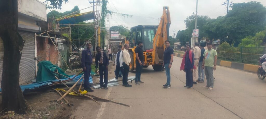 बिलासपुर – माननीय छ. ग़. उच्च न्यायालय बिलासपुर के आदेशानुसार , श्रीमान कलेक्टर महोदय के निर्देशानुसार ,SDM महोदय बिल्हा के मार्गदर्शन में आज दिनांक 23/08/2025 नया पारा चौक बोदरी से चकरभाठा ब्रिज तक एवं रहंगी मोड़ बोदरी से उच्च न्यायालय आवासीय परिसर तक जाने वाले सड़क पर /सड़क किनारे दोनों तरफ फलों, सब्जी एवं अन्य सामग्री आदि के ठेले/कर गुमटी / चकरभाठा स्थित दुकानों के दुकानदारों द्वारा सड़क पर पोस्टर , एवं शेड तैयार कर अतिक्रमण किए जाने , सामानों को बाहर रखकर व्यापार किए जाने वाले अतिक्रमण को हटाया गया एवं पोस्टन , शेड को नगरपालिका बोदरी के दस्ते द्वारा जप्ती की कार्यवाही की गई एवं रोड किनारे अव्यवस्थित ढंग से खड़े करने वाले वाहन जिससे यातायात बाधित होता है को निर्देशानुसार यातायात वाहन के लिफ्टर द्वारा लिफ्ट कर थाना थाना प्रभारी चकरभाठा द्वारा थाने में खड़ा कराया गया।
