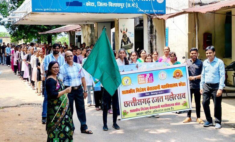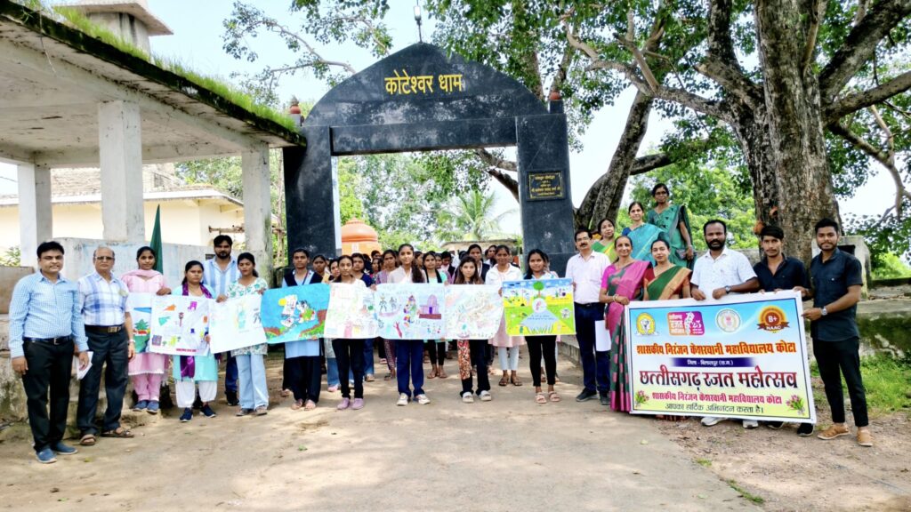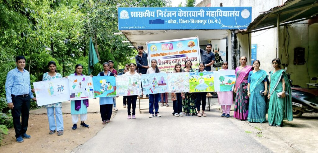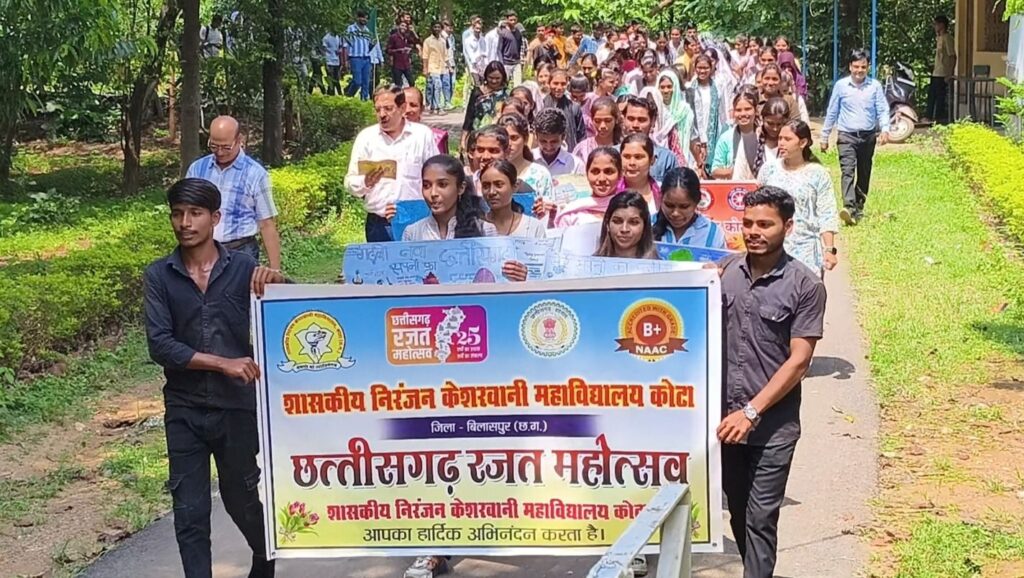 कोटा – अटल बिहारी वाजपेयी विश्वविद्यालय बिलासपुर से सम्बद्ध शासकीय निरंजन केशरवानी महाविद्यालय कोटा में छत्तीसगढ़ राज्य की स्थापना के 25 वर्ष पूर्ण होने के उपलक्ष्य में मनाया जा रहे छत्तीसगढ़ रजत जयंती समारोह के अंतर्गत आयोजित किये जा रहे विभिन्न कार्यक्रमों की श्रृंखला में आज दिनांक 10.09.2025 को भाषण प्रतियोगिता, पोस्टर प्रतियोगिता एवं रैली का आयोजन किया गया।