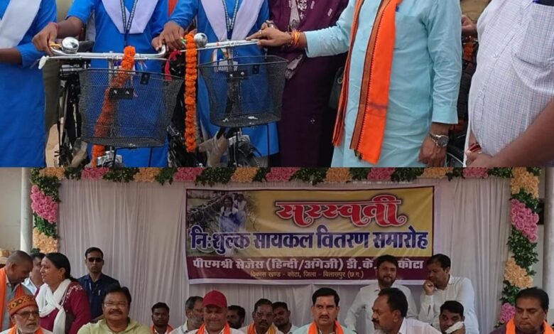 कोटा – छत्तीसगढ़ शासन की महत्वाकांक्षी योजना सरस्वती साइकिल योजना के तहत स्कूल छात्राओं को साइकिल वितरण किया जा रहा है।