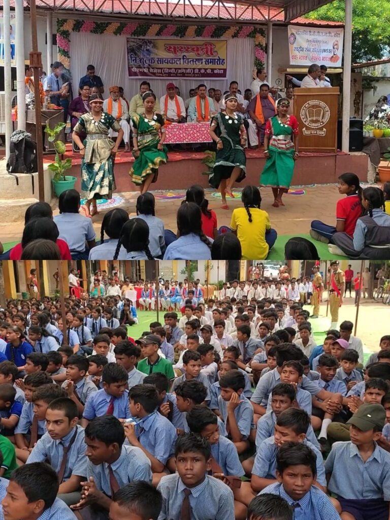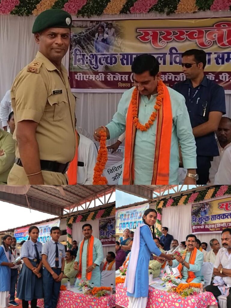 आज कोटा स्थित शासकीय डी.के.पी. उच्चतर माध्यमिक विद्यालय कोटा में आवास एवं शहरी विकास मंत्री तोखन साहू जी द्वारा छात्राओं को सरस्वती साइकिल योजना के तहत 63 छात्राओं को साइकिल का वितरित किया गया।