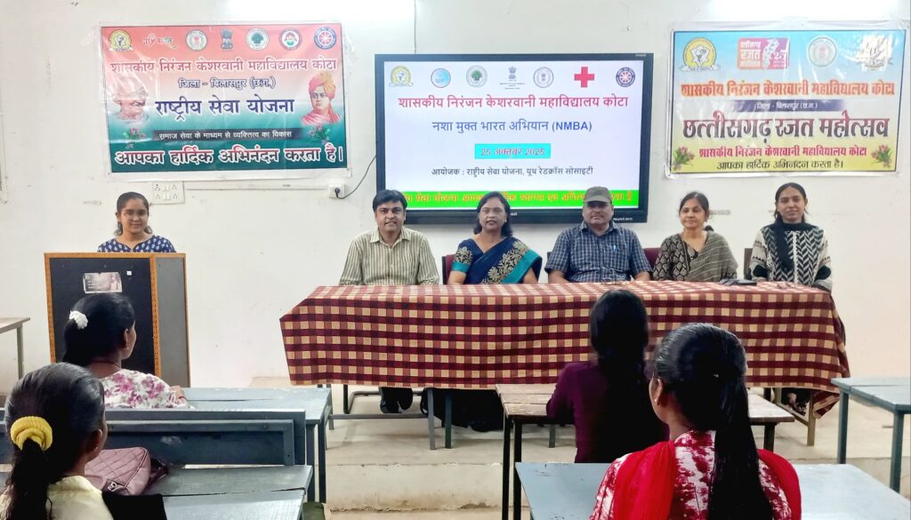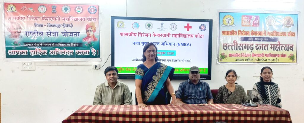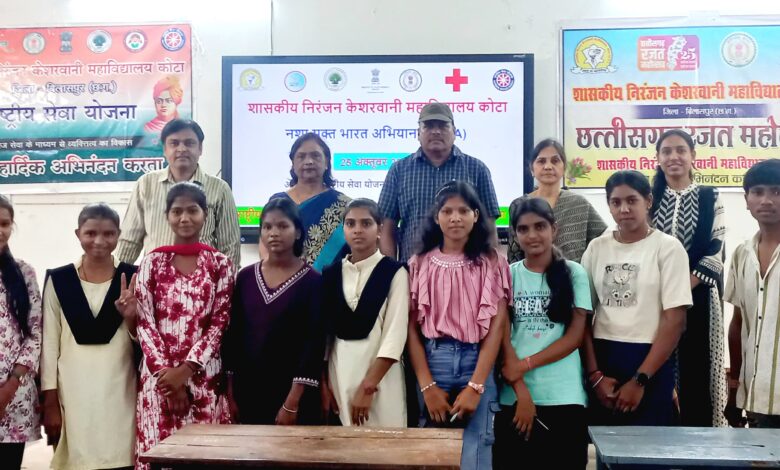 कोटा – अटल बिहारी वाजपेयी विश्वविद्यालय बिलासपुर से संबद्ध शासकीय निरंजन केशरवानी महाविद्यालय कोटा की राष्ट्रीय सेवा योजना इकाई एवं युथ रेडक्रॉस सोसाइटी के संयुक्त तत्वाधान में नशा मुक्त भारत अभियान के अंतर्गत युवावर्ग को प्रेरित करने हेतु जागरूकता कार्यक्रम एवं भाषण प्रतियोगिता का आयोजन किया गया।