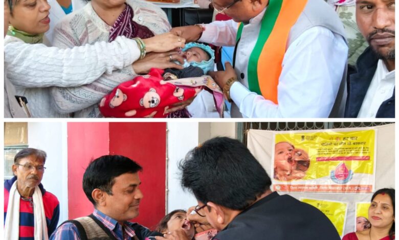 कोटा – सामुदायिक स्वास्थ्य केंद्र कोटा में विकासखंड स्तरीय पल्स पोलियो अभियान का वन विकास विभाग के अध्यक्ष (चेयरमैन), रामसेवक पैकरा ,कोटा विधायक अटल श्रीवास्तव के द्वारा बच्चों को दो बूंद दवा पिलाकर पल्स पोलियो कार्यक्रम का उद्घाटन किया है विकासखंड कोटा जनपद अध्यक्ष श्रीमती सूरज भारद्वाज ने चुरेली ग्राम के पल्स पोलियो बूथ का उद्घाटन किया है ।पोलियो अभियान के तहत कुल 43983 बच्चों को पोलियो की खुराक पिलाने का लक्ष्य निर्धारित है। इसके लिए कोटा ब्लॉक में 263 पोलियो बूथ बनाए गए हैं, जो ब्लॉक के सामुदायिक स्वास्थ्य केंद्र, प्राथमिक एवं उप स्वास्थ्य केंद्रों (आयुष्मान आरोग्य मंदिर)तथा आंगनबाड़ी केंद्रों में संचालित किए जा रहे हैं। अभियान के पहले दिन बूथों पर बच्चों को दवा पिलाई गई है । जबकि 22 एवं 23 दिसम्बर को मॉप-अप दिवस के रूप में घर-घर जाकर छूटे हुए बच्चों को पोलियो की खुराक दी जाएगी। इस अवसर पर पूर्व नगर पंचायत अध्यक्ष प्रदीप कौशिक, मण्डल अध्यक्ष बजरंग जायसवाल ,भाजपा नेता सुलेश पांडेय,खंड चिकित्सा अधिकारी डॉ निखलेश गुप्ता , विकासखंड कार्यक्रम प्रबंधक श्वेता सिंह सहित अधिकारी कर्मचारी उपस्थित रहे ।