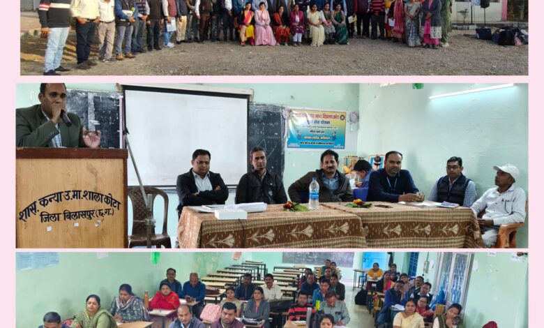 कोटा – विकासखंड कोटा के हाई एवं हायर सेकंडरी विद्यालय की व्याख्याताओं का ब्लूप्रिंट प्रश्न पत्र निर्माण एवं शिक्षण शास्त्र पर प्रशिक्षण का सफल आयोजन हुआ जिसमें दो चरणों में विकासखंड कोटा के समस्त विज्ञान गणित समूह के व्याख्याताओं ने पांच-पांच दिवस का चरणवार प्रशिक्षण प्राप्त किया इस दो चरणों में आयोजित प्रशिक्षण को बी आर जी मनोज श्रीवास कन्या उच्चतर माध्यमिक विद्यालय कोटा,अमित साहू हायर सेकेंडरी गोबरीपाट,वीरेंद्र जोशी हायर सेकेंडरी टेंगनमाड़ा,सुशील पटेल हायर सेकेंडरी मिट्ठू नवागांव, हरप्रसाद कौशिक हायर सेकेंडरी शीश के द्वारा प्रशिक्षण दिया गया प्रशिक्षण के प्रारंभ दिवस में मुख्य अतिथि के रूप में विकासखंड शिक्षा अधिकारी कोटा व प्रशिक्षण स्थल शासकीय कन्या उच्चतर माध्यमिक विद्यालय कोटा की प्राचार्य श्रीमती आशा दत्ता के गरिमामयी उपस्थिति में प्रशिक्षण का शुभारंभ किया गया,प्रशिक्षण का सफल आयोजन पश्चात समापन कार्यक्रम में मुख्य वक्ता के रूप में विकासखंड शिक्षा अधिकारी श्री नरेंद्र मिश्रा,सहायक विकासखंड शिक्षा अधिकारी श्री नवनीत तंबोली,तेंदुआ प्राचार्य श्री गोपाल सिंह ध्रुव प्रमुख रूप से उपस्थित रहे।