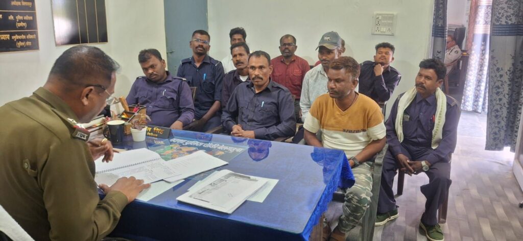 जिन्हें, थाना क्षेत्र में बढ़ते अपराधों, नशा विरुद्ध अभियान, सायबर अपराध के विरूद्ध जागरूकता अभियान, गांव में बाहरी आवारा घुमक्कड़ गिरोह डेरावालों के संबंध में जानकारी,वाहन दुर्घटनाओं को रोकने में,ग्राम कोटवारों की भूमिका ,इसके अलावा, कोटवारों को गांव में अपरिचित व्यक्तियों, वाहनों या संदिग्ध गतिविधियों की निगरानी रखने की समझाइस दी गई।