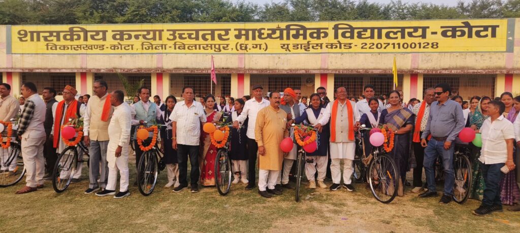 कोटा – नगर की प्रतिष्ठित शैक्षणिक संस्था शासकीय कन्या उच्चतर माध्यमिक विद्यालय कोटा में शासन की महत्वाकांक्षी निःशुल्क सरस्वती साइकिल योजना के अंतर्गत 116 छात्राओं को नि:शुल्क साइकिल वितरित की गई। कार्यक्रम के दौरान नगर के समाजसेवी विष्णु अग्रवाल द्वारा 1 लाख रुपये की लागत से निर्मित साइकिल स्टैंड का लोकार्पण भी किया गया।
