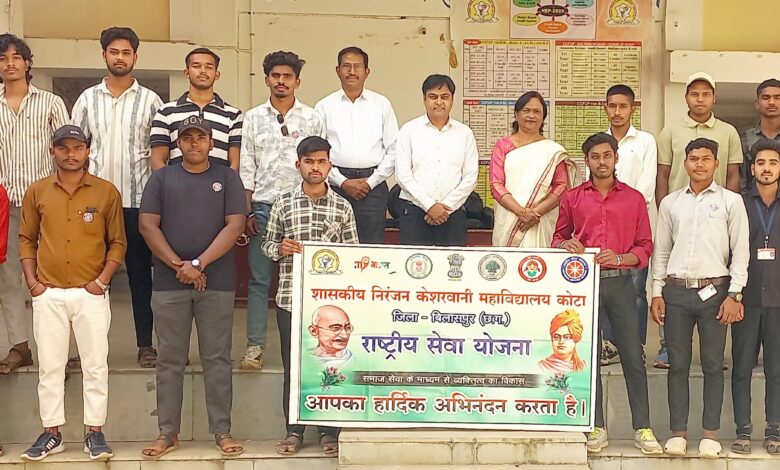 कोटा – अटल बिहारी वाजपेयी विश्वविद्यालय बिलासपुर से संबद्ध शासकीय निरंजन केशरवानी महाविद्यालय कोटा की राष्ट्रीय सेवा योजना इकाई की बी-प्रमाण-पत्र की पात्रता के लिए परीक्षा आयोजित हुई. डॉ. मनोज सिन्हा कार्यक्रम समन्वयक राष्ट्रीय सेवा योजना अटल बिहारी वाजपेयी विश्वविद्यालय बिलासपुर एवं डॉ. कान्ति अंचल जिला संगठक बिलासपुर के मार्गदर्शन में आयोजित इस परीक्षा में 28 स्वयंसेवक सम्मिलित हुए. इस परीक्षा में देवलाल उइके कार्यक्रम अधिकारी रासेयो, शासकीय महामाया महाविद्यालय रतनपुर बाह्य परीक्षक के रूप में उपस्थित रहे.