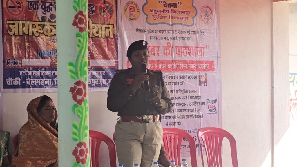 कोटा – वरिष्ठ पुलिस अधीक्षक रजनेश सिंह (भा.पु.से.) के निर्देशन में बिलासपुर पुलिस द्वारा चलाए जा रहे ‘चेतना अभियान’ के अंतर्गत मंगलवार को चौकी बेलगहना क्षेत्र के ग्राम कुरूवार में नशामुक्ति, साइबर जागरूकता और सड़क सुरक्षा विषय पर जागरूकता कार्यक्रम आयोजित किया गया। कार्यक्रम का आयोजन ग्राम पंचायत कुरूवार के सहयोग से किया गया।