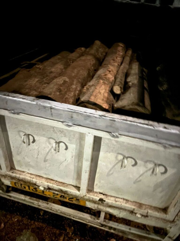pिकअप वाहन क्रमांक CG 10 AY 9034 (अनुमानित मूल्य ₹5 लाख) 2 नग सागौन लट्ठा (0.107 घनमीटर)