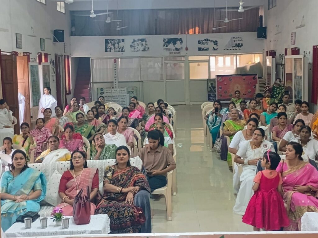 कार्यक्रम के अंत में सभी माता एवं बहनों का बैच एवं नारियल भेंट कर सम्मान किया गया।
